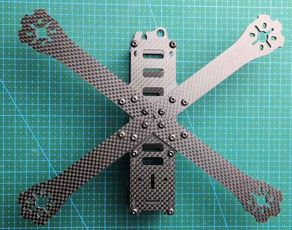 To custom drone frames, you only need to provide the design drawing to us. We will make the desired carbon fiber frames for you according to your drawing. We have 7 sets of high-precision CNC cutting equipment for you to cut FPV drone frames, quadcopter arms, Agriculture drone frames, micro carbon fiber drone frames and parts. Thicknesses range from 1.0mm to 6.0mm, even thicker. In terms of technology, we can make countersunk holes for customers, cut the press nut holes, sink the groove, and engrave the LOGO.