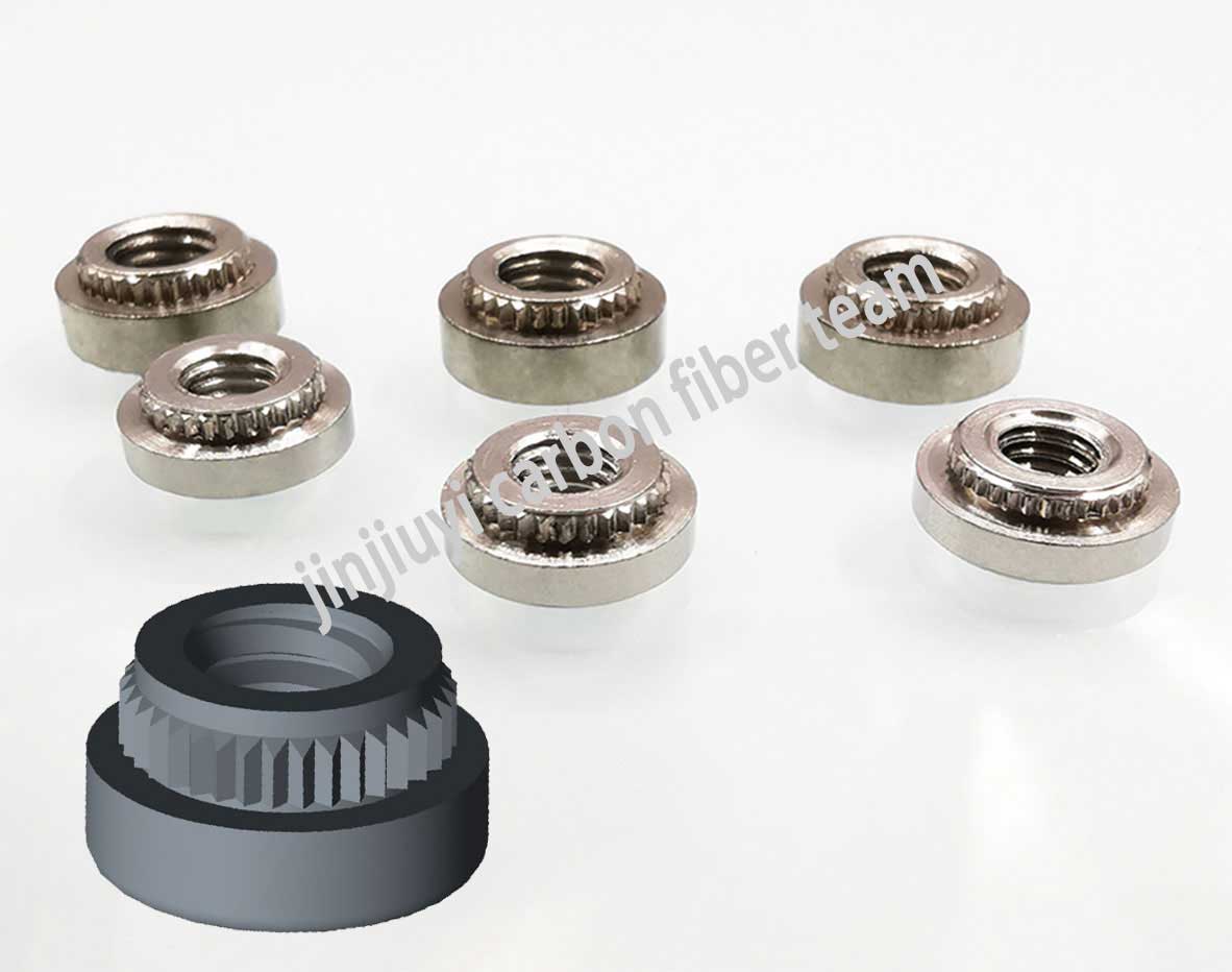 KF2 and KFS2 M3 press nuts are designed for use on printed circuit boards and on most brittle or hard materials; such as glass laminates, epoxy or resin with paper, nylon, or canvas bases, carbon fiber plate. They are also used on thin or unsuitable materials for threading, such as acrylic and polycarbonate panels. Once installed they provide a strong permanent thread in any printed circuit board material.